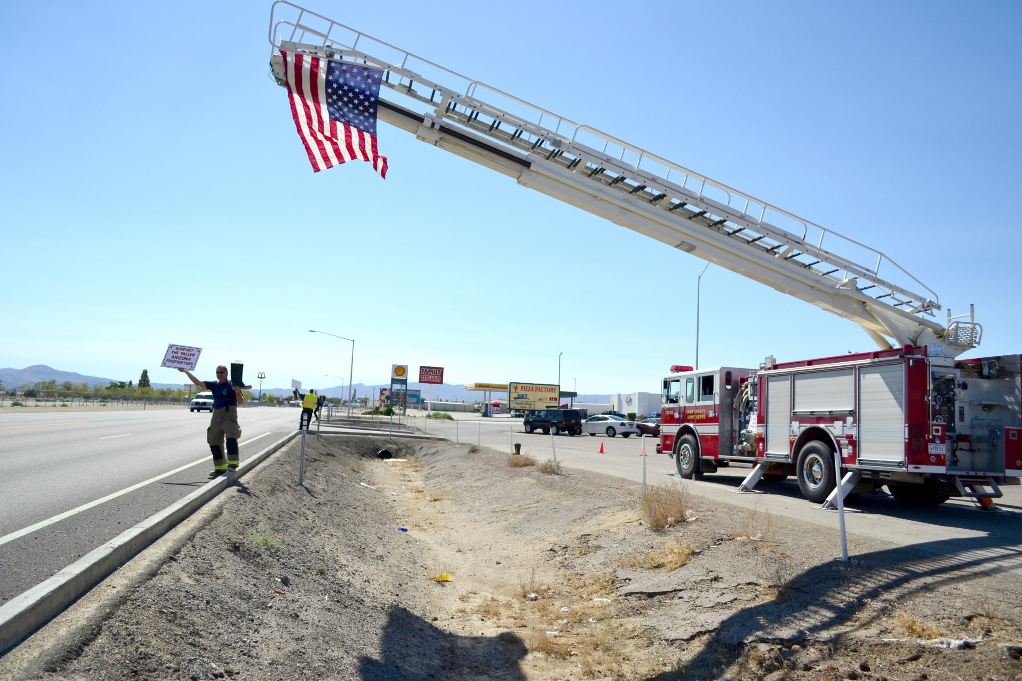 Firefighters from Hawthorne and the SOC Nevada, LLC fire department stood on the corner of 5th Street and E Street, and in the Hawthorne Safeway parking lot, holding their boots and asking passing motorists to donate to the families.