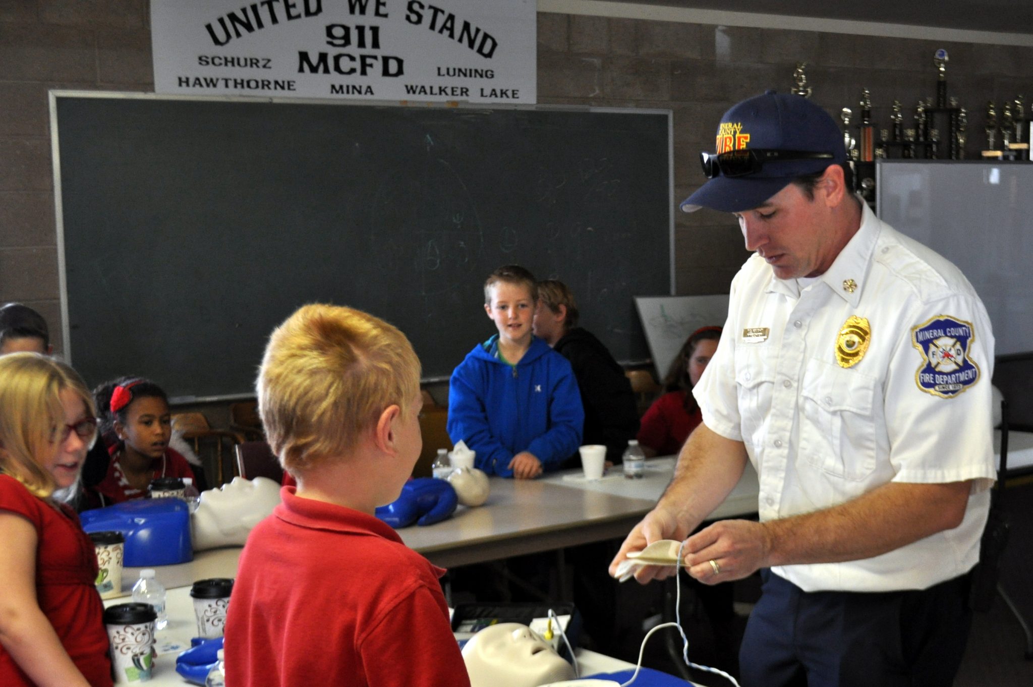 Fire chief, T.C. Knight held an early morning meeting with his crew. Each was dressed in red sitting around the volunteer chairs with a cup of coffee