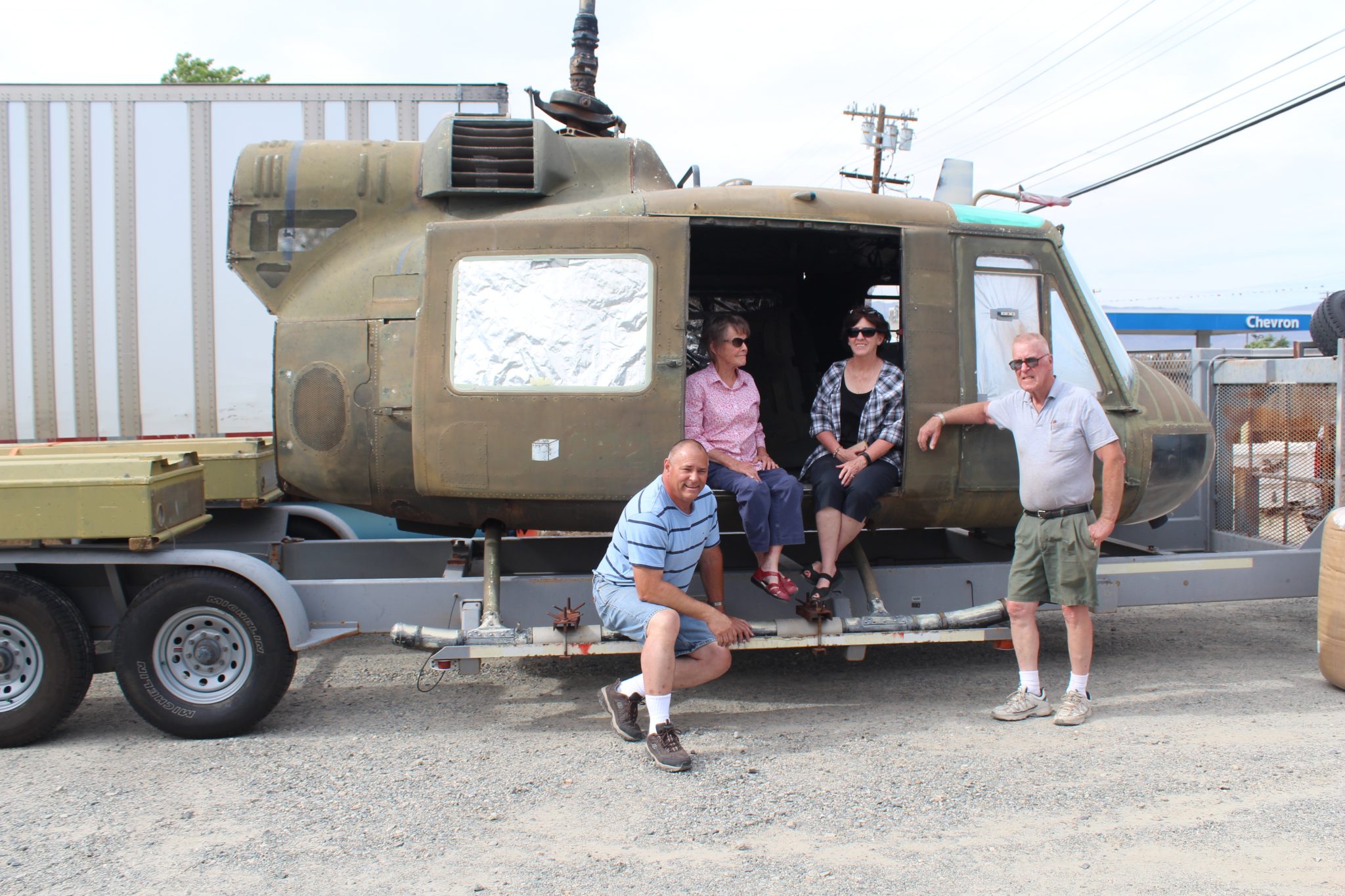 The Hawthorne Ordnance Museum recently received two Huey Gunship helicopters. Shown with the front section of the UH-1 Gunship when it arrived are museum officials (from left) Carole Mortensen, Wanda Millsap, Peter Papadakos and Harold Warner.