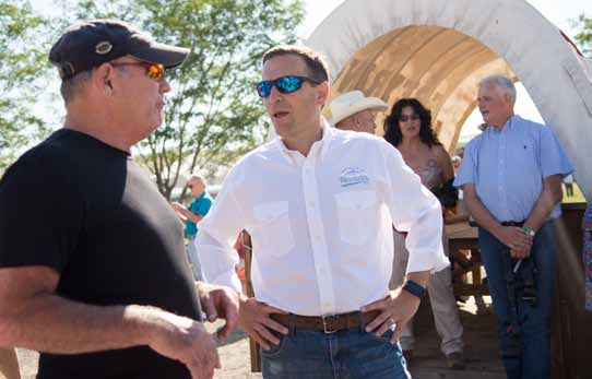 Nevada Attorney General Adam Laxalt speaks with an attendee at his 3rd Annual Basque Fry fundraiser in Gardnerville on Saturday.