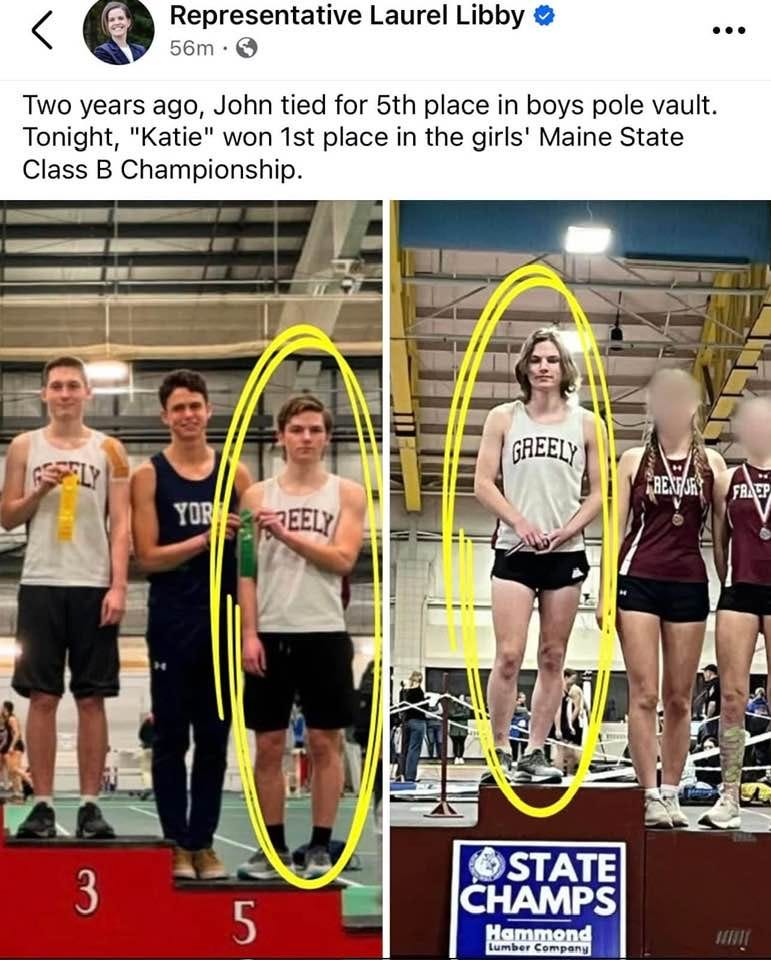 Look, we can argue the righteousness of Title IX and sex discrimination at length. Take your time. I’m just sayin’ that no one can look at that picture of that pole vaulter in Maine and call it normal.
